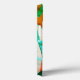Design de bandas azuis claras com alguns tons cianos em um fundo laranja avermelhado rústico, e um efeito que simula chuva fina.