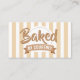 Design moderno de cartão de visita de catering com fundo de listras bege claro, fontes manuscritas modernas e layout simples. Esses cartões de visita de padaria neutros apresentam um bege pastel suave ou você pode editar as cores para qualquer cor que desejar - ótimo para chefs de pastelaria, padeiros e catering. Adicione o nome da sua marca ou logotipo e faça deste design de cartão de visita de padaria feminino o seu próprio.