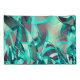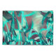 Design de bandas azuis claras com alguns tons escuros ou cianos em um fundo avermelhado e um efeito que simula chuva fina.