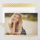 CONVITE DE FESTA DE FORMATURA | LISTRAS DE FOIL DOURADO Convite de festa de formatura personalizável com padrão de listras diagonais douradas.