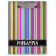Características deste design da prancheta um teste padrão atraente das listras (ou das linhas) de várias cores. Igualmente caracteriza um nome personalizado.