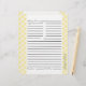 Parte da nossa coleção "Lemon Pie" cada um dos itens desta série apresenta verificações amarelas e brancas com acentos verdes. Alguns itens apresentam um padrão verde listrado com sotaques de verificação e alguns dos itens apresentam um pedaço de torta de limão lúcido como sotaque. Quase todos os itens foram projetados para você personalizar para suas necessidades exclusivas.