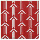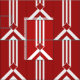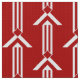 O tecido geométrico à moda caracteriza um teste padrão branco corajoso no vermelho. Três que alternam as vigas brancas e vermelhas terminam em um diamante vermelho esboçado com branco. Três listras brancas estendem da base do diamante até que o teste padrão repita a doação lhe do olhar das setas. O vermelho separa as seqüências das setas.