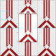 O tecido geométrico à moda caracteriza um teste padrão vermelho corajoso no branco. Três que alternam vigas vermelhas e brancas terminam em um diamante branco esboçado com vermelho. Três listras vermelhas estendem da base do diamante até que o teste padrão repita a doação lhe do olhar das setas. O branco separa as seqüências das setas.