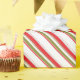 Enrole seus presentes em estilo com este belo papel de embrulho de natal com padrões coloridos de listras vermelhas, verdes e brancas.