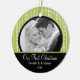 Nossos primeiros enfeites de natal da foto caracterizam um fundo preto & verde bonito da listra com uma banda preta! Personalize com sua informação e data e você são todos ajustam-se para ir! Presente datado maravilhoso da lembrança para seu primeiro Natal e uma grande adição a você coleção dos enfeites de natal.