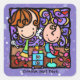 O artigo pessoal e original do presente ou do promocional para qualquer um no negócio da beleza ou trabalhos em um salão de beleza ou é um armário, um cabeleireiro, um beautician ou um alguém do cabelo do cosmetologist do estudante… esses esperanças ser um algum dia. Duas meninas adoráveis super com cabelo encaracolado longo. Um está sentando-se em uma cadeira do salão de beleza que tem seu para fora fundido do cabelo/secado/denominado quando o estilista fizer feliz suas beleza & reforma do cabelo com um ventilador e uma escova do cabelo branco. Pintado mão para assemelhar-se ao vitral em cores mornas, vibrantes do roxo, em marrons, em rosa e em cerceta. As ondas, os redemoinhos, as bolinhas e os corações, tudo as meninas de toda a idade amam. Encantamento, tão feminino, e sobretudo, original!