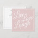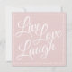 Perfeito para ter várias em mãos para estar sempre pronto para enviar suas saudações, pois às vezes é preciso ter um cartão geral para enviar uma mensagem ou saudações. Clássico e elegante e envia uma bela mensagem inspiradora - Live Love Laugh. Adicione sua própria mensagem no verso ou escreva cada mensagem manualmente mais tarde. Escrito branco elegante em rosa suave clássico. Envie-me um e-mail se você ajudar a fazer deste cartão mais pessoal ou se você precisar de ajuda para transferi-lo para outro produto e eu gostaria de ajudar. designsbykatz@gmail.com