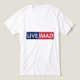 A clean and modern typography design featuring the bold phrase “LIVE MAD” in a stylish split‑color layout of navy blue and red. This minimalist streetwear‑inspired graphic is perfect for T‑shirts, hoodies, phone cases, stickers, and lifestyle accessories. With its sharp lines, strong contrast, and contemporary aesthetic, it delivers a confident and energetic look that appeals to fans of motivational, bold, and urban‑style designs. Ideal for everyday wear or gifting to someone with a fearless attitude.