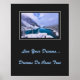 Poster mostrada com uma impressão fotográfica de uma bela cena de lago montanhês de inverno. O fundo poster é uma cor de carvão profunda. Personalize este item ou comprar como está. Imagem do stock freepik.com