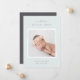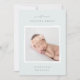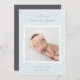 O anúncio de nascimento legante em cores suaves apresenta uma foto de recém-nascido quadrada em branco, com "Welcome [Name]" (Bem-vindo [Nome]]) no topo em caracteres de cinza. Personalize com a data de nascimento do bebê, e as estatísticas de natalidade abaixo, e adicione uma mensagem pessoal às costas, juntamente com uma foto adicional.