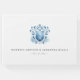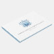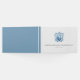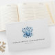 Convide seus convidados de casamento para compartilhar seus desejos e sabedoria com este elegante livro de convidados de casamento com crista de aquarela em tons de azul. Use os campos de modelo para personalizar com suas iniciais, nomes e data de casamento com monogramas. O livro se reverte para uma cor azul poeirenta sólida. Para ver mais designs de casamento, visite www.zazzle.com/dotellabelle