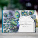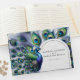 Convide seus convidados de casamento para compartilhar seus desejos e sabedoria com este livro de convidados de casamento, com um pavão de aquarela com plumas de penas em tons de azul real, verde e roxo. Seus nomes e data de casamento aparecem em letras clássicas. O livro se reverte para um padrão de penas de pavão correspondente. Para ver mais designs de casamento, visite www.zazzle.com/dotellabelle