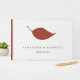 Convide seus convidados de casamento para compartilhar seus desejos e sabedoria com este moderno livro de convidados de casamento, apresentando uma folha de laranja queimada minimalista. Seus nomes e a data do casamento aparecem abaixo em letras clássicas de serif. O livro reverte para uma cor consistente. Para ver temas de casamento outono mais minimalistas, visite www.zazzle.com/dotellabelle