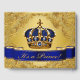 Livro de hóspedes do Príncipe chá de fraldas, com a coroa azul e dourada real e sua faixa de príncipe em um fundo espiralado de ouro rico. Este livro convidado do chá de fraldas príncipe rico é facilmente personalizado para o seu evento adicionando texto e movendo/removendo a coroa e o banner conforme necessário.