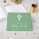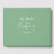 Um livro de hóspedes verde sábio com uma cruz floral branca para batizar ou batismo. Personalize com nome e data, e mude batizando para batismo, se preferir. Parte da Coleção Floral Cross Christening.