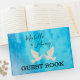 Livro de Convidados Editável. Linda fundo azul com pombas e corações cor-de-rosa. Perfeito para memórias de fazer!
