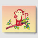 Você pode personalizar ou remover o texto deste adorável livro convidado de festa de aniversário que contém um macaco vermelho com uma cauda longa e coalhada em um galho de árvore cercado por folhas verdes.