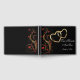 Este livro de hóspedes é mostrado a preto com uma adorável impressão de dois corações com nomes de exemplo personalizados. Personalize este livro e altere o texto para o seu.