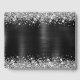 Brilhante cintilante brilhante cintilante clássico na borda superior, sobre uma folha metálica fina preta escovada em metal ou aço inoxidável, estilo ombre. As cores principais são o azul real, prateado e branco. Personalize os estilos de fonte e a cor para criar seu próprio livro convidado de casamento e você pode substituir os gráficos de arte digital no verso por sua própria foto de noivado.