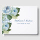 Um belo livro de hóspedes floral de casamentos azul e branco. Guarde que você vai tesourar por décadas!