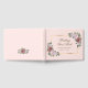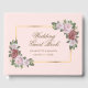 Elegante pincel cor-de-rosa e ouro floral livro de hóspedes com flores cor-de-rosa pinceladas e verde armando os detalhes do casamento dentro a quadro de ouro. Itens correspondentes disponíveis. Personalize facilmente este modelo on-line.