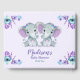 O Livro de Convidados de Gêmeas Chás de fraldas Deseja dois bebês - elefante roxo e turquesa com arcos e flores aquáticas, personalizável livro de convidadas de chás gêmeas e Desejos para o Livro de Meninas Pequenas.