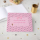 O design de Urso Cuto Personalizado e Balões apresenta um padrão de balões de cor pastel como fundo para o nome e data de vencimento da criança, que é exibido no centro do padrão, em uma borda rosa. O verso apresenta uma imagem solteiro de um urso adorável enquanto ela segura um monte de balões. Projetado para coordenar com os convites "Cute Bear e Balões Themed Baby Shower", muito obrigado, e acessórios.