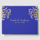 Um elegante e rico livro de hóspedes azul e casamento tema damasco de ouro. Este livro de convidados de casamento faz parte de um convite para o casamento.