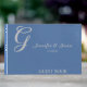 Este é um lindo, moderno, Livro de Convidados do Cobrir Azul Dusty com os nomes da Noiva e do Duro, e a data do casamento. Isto vai melhorar qualquer casamento. É elegante, com uma letra de escrita clássica. Este é o livro de hóspedes que você vai procurar por muitos anos.