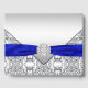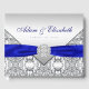 Elegante livro de hóspedes real, azul e prateado, com fita de diamante azul real em um lindo fundo de renda prateada. Este lindo livro de convidados de casamento azul real é facilmente personalizado para o seu evento simplesmente adicionando os seus detalhes no estilo de letra da sua escolha.