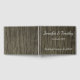 Este livro básico de convidados de casamento ou casamento contém a mensagem "Guestbook de cerimônia de casamento", os nomes personalizados do casal casado e a data de recepção de casamento. Ele também apresenta um fundo com um padrão rústico como madeira. Poderia ser usado para gravar mensagens felizes para o casal recém-casado.
