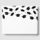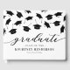 Livro de convidado da festa de formatura moderna com um simples fundo branco que pode ser mudado para qualquer cor, caindo bonés pretos de papelão e um modelo de texto moderno que é fácil de personalizar.