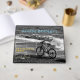 Fotografia em preto-e-branco de uma bicicleta colocada contra uma guardiã de um lençol sobre o mar. Livro de convidado do cobrir sobre duro com texto para a parte de aposentadoria personalizada. Você pode facilmente alterar o texto (cor, fonte, tamanho e posição) clicando no botão personalizar. Disponível também no notebook espiral. Convite de Reforma Correspondente.