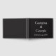 Este design do livro de convidados de casamento personalizável apresenta uma aparência simples, limpa e simples, com texto branco sobre fundo escuro. Os nomes e a data podem ser personalizados.