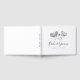 Um livro de hóspedes de casamento bonito com borboletas divertidas. Ilustração romântica com duas borboletas apaixonadas. Design de batida com tipografia elegante. Opções de preto e branco ou cor.