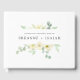 Peça aos seus entes queridos e convidados para assinarem seus votos pessoais e sentimentos de amor com este livro de visitas de casamento personalizado simples, chique e elegante, uma alternativa econômica com um belo arranjo de flores brancas em aquarela e folhagens verdes em um fundo sutil e totalmente personalizável. Explore esta coleção e encontre itens correspondentes em nossa loja!