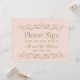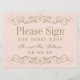 Adicione um toque romântico com este letreiro "Por favor, assine nosso livro de visitas" vintage em rosa e dourado com ornamentos. Bordas douradas ornamentadas com filigrana enquadram a tipografia elegante em um fundo rosa suave, com espaço para o nome do casal e a data do casamento. Coordenado com o conjunto de papelaria completo com ornamentos na paleta de cores rosa. Todo o texto é totalmente personalizável.