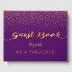 Um livro de hóspedes para uma glamourosa 60 & Fabulosa, 60ª Festa de aniversário. Um fundo púrpura chic com um sprinkle de confetti ouro. O texto: Livro de Convidados é escrito com letras douradas de moda. O nome é escrito com um script de estilo manuscrito. Modelo para o seu texto na coluna.