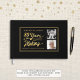 Guestbook personalizado de 80 de aniversário de cor ou livro de memória com um design de tipografia de script de caligrafia retrorreflectora com 80 ANOS NO FAZER que incorpora seu ano de nascimento no design e seu texto personalizado em ouro e 2 fotos na sua escolha de cor de fundo (mostrada em preto). ASSISTÊNCIA: para obter ajuda com a modificação ou personalização do design, transferir o design para outro produto ou, se você quiser coordenar itens, entre em contato com o designer ANTES DE ENCOMENDAR através da guia MENSAGEM de Bate-papo Zazzle ou envie um email para makeitaboutyoustore@gmail.com.