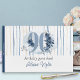 Livro de hóspedes de 90 festa de aniversário com número 90 decorado com rosa-buds, florais e folhagem em tons de azul costeiro e areia. Design sutil feminino e elegante com arranjos florais de aquarela, decapantes de tinta e pinceladas. Perfeito para comemoração de 90 com vibe costeira, casa de praia ou ao lado de lago ou local de frente de água, por exemplo.