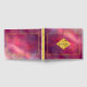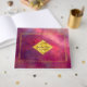 O brilhante fundo de abstrato de arte em tons de roxo, rosa escuro e vermelho é acentuado com sotaques de ouro falsos que brilham na frente e atrás. Adicione o nome da sua casa de hóspedes, aluguel, chalé ou outra oferta de hospitalidade. Ou, mude para um casamento, formatura ou livro de convidados memoriais - este é um design versátil.