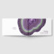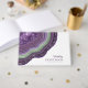 Nem todos os designs de casamento são criados iguais. Os layouts assimétricos para as peças neste impressionante conjunto de casamento provam que isso não é ruim! Bandas de cor onduladas em tons contrastantes de roxo violeta e verde com um centro de cristal brilhando formam um sotaque geode/agate na maioria das peças do conjunto. O 'Livro de Convidados' do casamento mostrado aqui mostra o acima mais uma modelo para adicionar uma mensagem pessoal na frente, seus nomes e data do casamento no cobrir traseiro. Procure ID647 para ver todas as peças de coordenação neste conjunto.