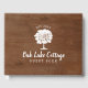 Permita que seus convidados deixem um recado e compartilhem memórias sobre sua estadia no aluguel de férias. Esta design apresenta um carvalho branco desenhado à mão e um fundo de textura de madeira escura. Edite esta modelo para tornar este design facilmente seu e adicione um toque pessoal e acolhedor à sua casa de hóspedes.