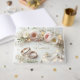 Flores Rosa e Brancas com Anéis de Casamento Livro de Convidados Enche seu dia especial por anos para vir com um livro de hóspedes feito apenas para você! Personalize a frente e a parte traseira com fotos, designs e texto para uma manutenção especial que você irá tesourar para sempre. Perfeito para casamentos, chás de fraldas e graduações, deixe seus hóspedes caneta seus pensamentos e guardem as memórias como ontem!