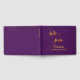 Guestbook elegante e moderno para um aniversário de 40 anos. Espanto de fundo roxo e texto dourado falso escrito com um script de estilo manuscrito de tendência: olá quarenta. Com pontos de ouro como decoração. Modelos para nome e data, letras de ouro. Você pode alterar a cor do plano de fundo para corresponder ao seu tema. Clique em personalizar e em "selecionar uma cor de fundo" à sua direita.