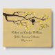 Comemore um quinquagésimo aniversário de casamento com este lindo livro de hóspedes. Esta design representa uma árvore com folhas de ouro e aves-vivas. Personalize a redação na frente, no verso e na coluna para fazer uma espécie de guarnição. Design original do vetor por Night Owl's Menagerie, 2017.