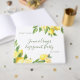 Celebre o (s) principal (es) amor (es) em um casamento com tema de limão ou outro evento especial. Um monte de limões inteiros e cortados organizados ao longo da parte superior e inferior deste colorido livro de visitas. Ótimo para casamento com tema de citrino ou jardim ou outro evento. Também pode ser personalizado para uma festa de noivado, celebração de aniversário ou festa de aniversário. Disponível com produtos correspondentes.