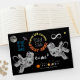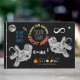 Adicione até duas fotos e suas mensagens personalizadas.Astronautas no espaço com os planetas do nosso Sistema Solar, símbolo infinito, equação pi e trocadilhos divertidos. Muito divertido para aniversários, noivados, parceiros, graduação, aniversário ou seu evento especial.