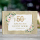 Design de cartão elegante com buquês de flores brancas, cor-de-rosa, delicadas, de cor branca, forma branca com uma estrutura falsa de ouro, balão 3D renderizado número 50, num fundo falso de ouro brilhante. Nas costas dos buquês florais no mesmo fundo. Use a ferramenta Personalizar para adicionar suas informações, alterar fontes, cores da fonte. Mais ideias na minha Coleção de Aniversário Floral.